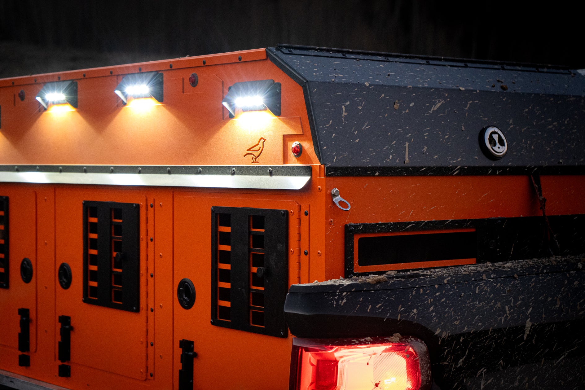 We do our best to make sure everything and everybody stays warm and dry - but water is a tough one to keep out completely. The individual dog compartments each have multiple drain holes so water cannot pool up. If you are concerned about the storage area we recommend keeping guns and gear in dry bags or hard cases.